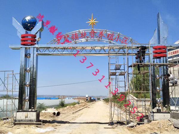 雕塑名稱:12米不銹鋼牌樓 村口不銹鋼牌樓 養(yǎng)殖企業(yè)不銹鋼大門口雕塑