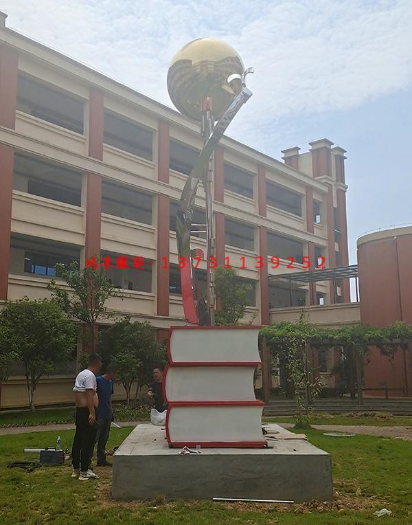 鴻景不銹鋼雕塑廠家為江西玉龍小學制作的校園文化雕塑,高度為6米,采用不銹鋼板材制作,外表噴漆為汽車漆,制作的不銹鋼書本文化雕塑深深領導喜愛。